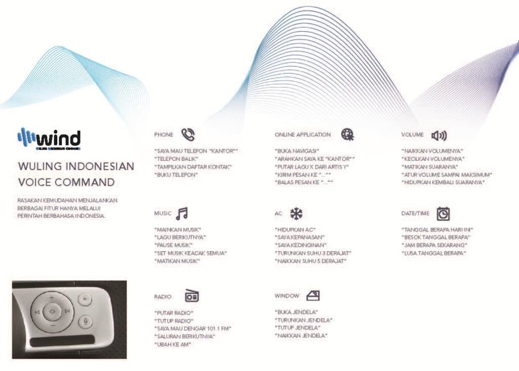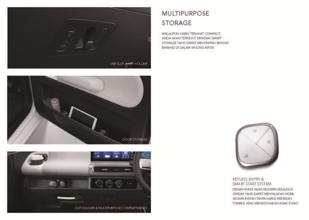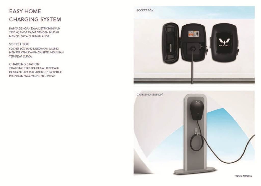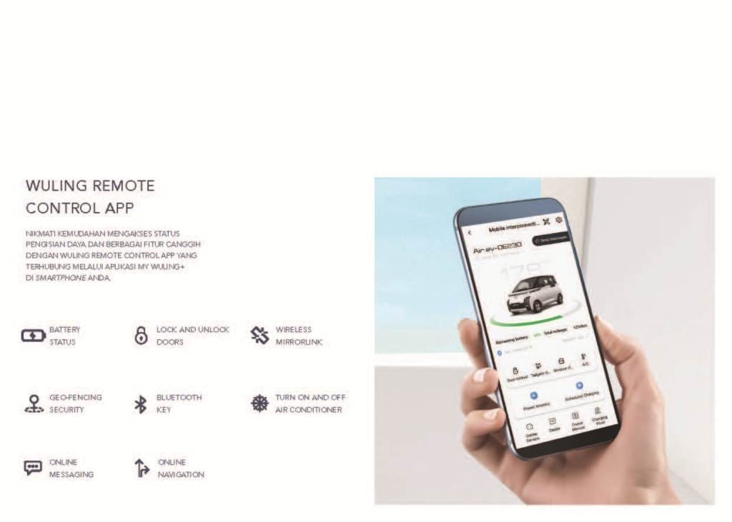 Dilengkapi dengan IoV (Internet of Vehicle) atau Wuling Remote Control App, fitur perintah suara pintar berbahasa Indonesia pertama dan satu-satunya di industri otomotif Indonesia yaitu WIND (Wuling Indonesian Command), serta fitur Easy Home Charging yang memungkinkan penggunanya bisa melakukan pengisian daya dengan mudah.